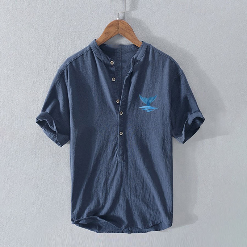 Men's Ocean Fishtail Art Casual Cotton And Linen Short Sleeve Shirt