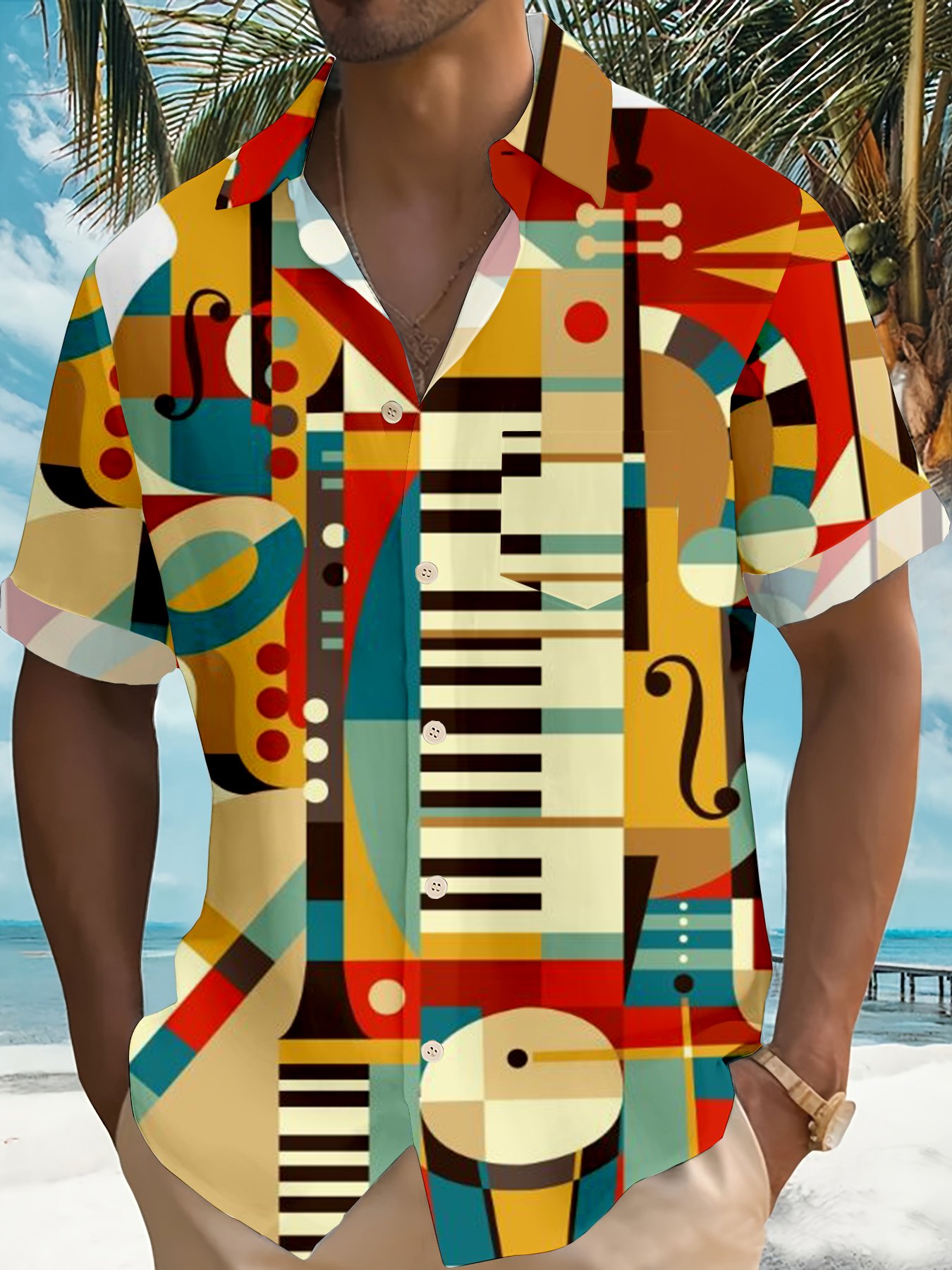 Men's Personalized Abstract Music Painting Short Sleeve Shirt
