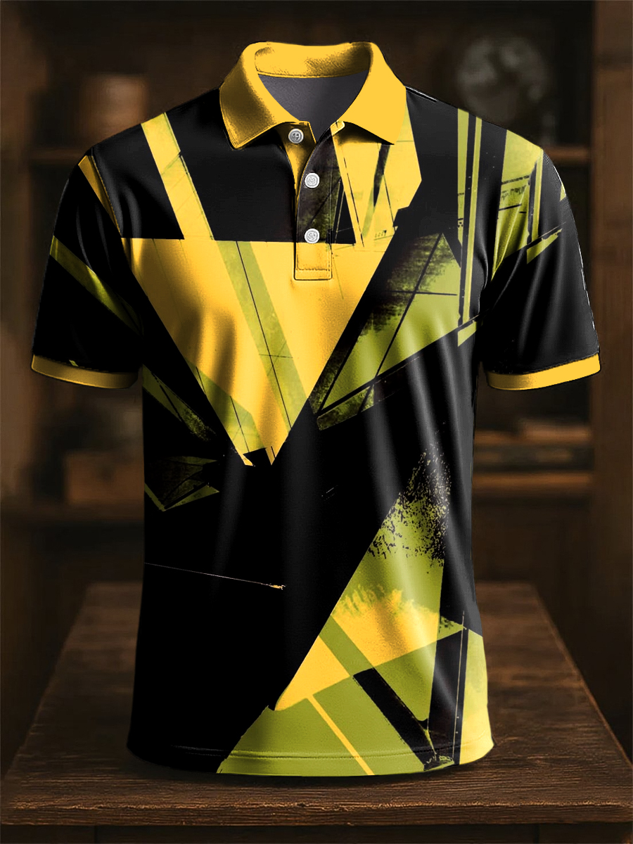 Men's Retro Abstract Color Block Art Print Casual Business Polo Shirt