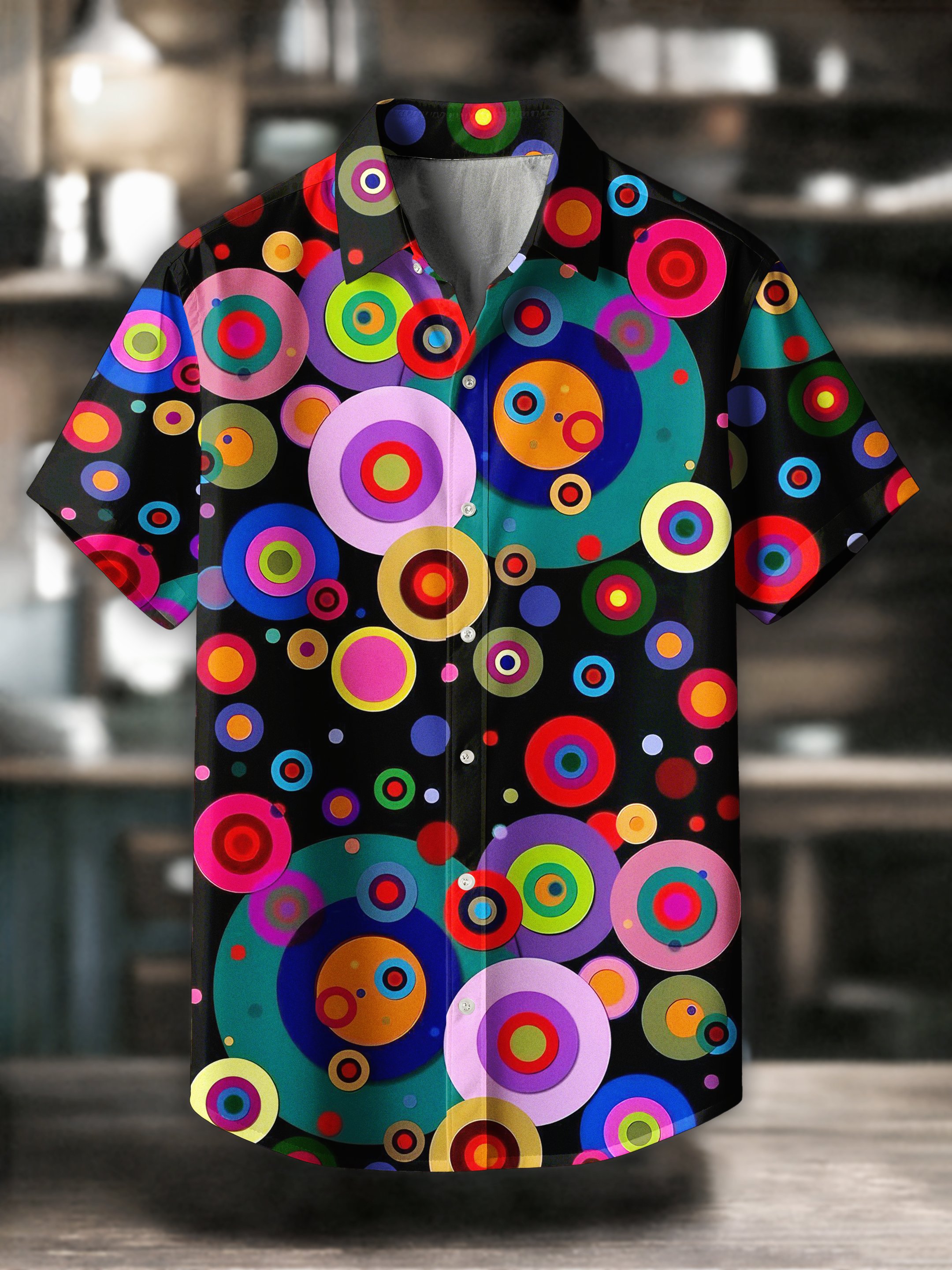 Men's Retro Abstract Geometric Art Print Lapel Short Sleeve Shirt