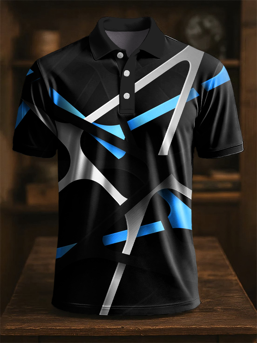 Men's Retro Abstract Line Art Print Casual Polo Shirt