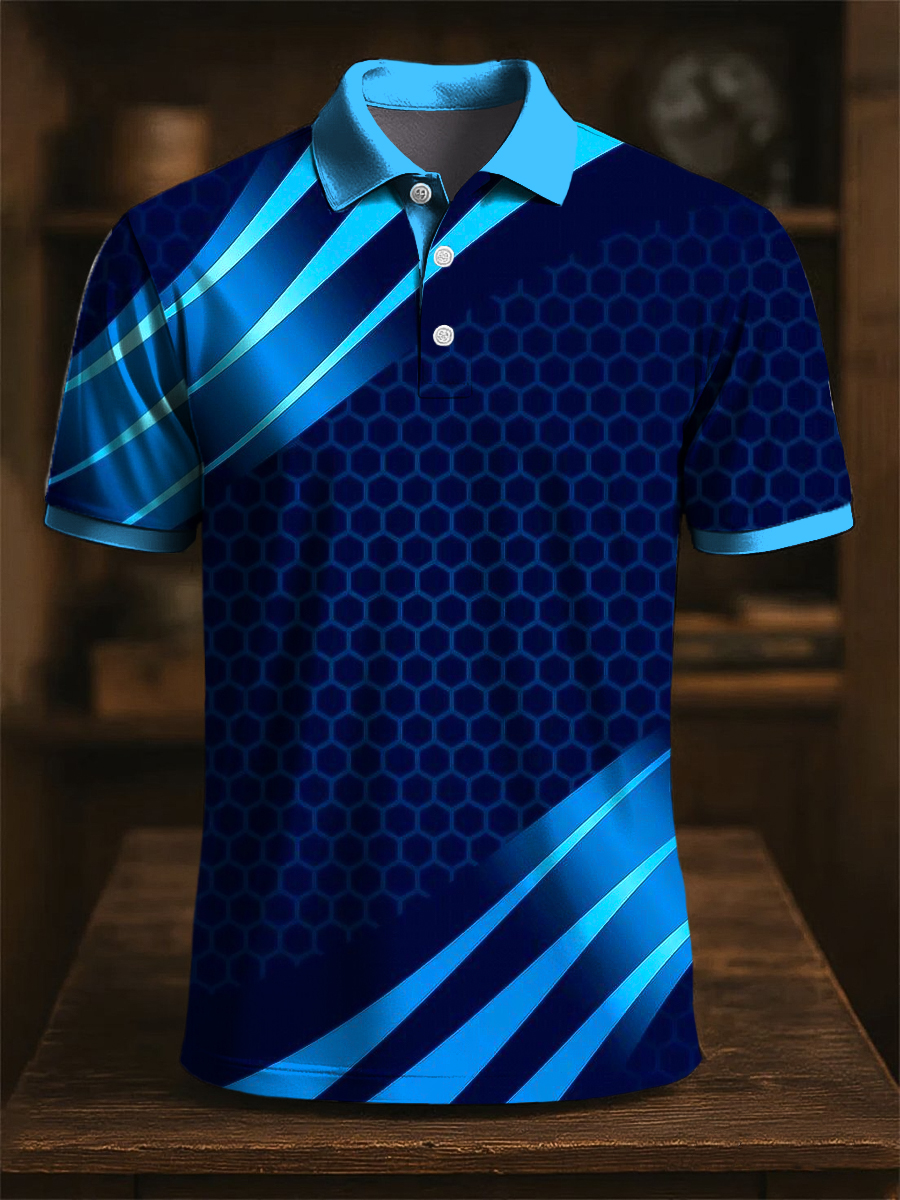 Men's Retro Abstract Line Geometric Texture Art Print Casual Business Polo Shirt