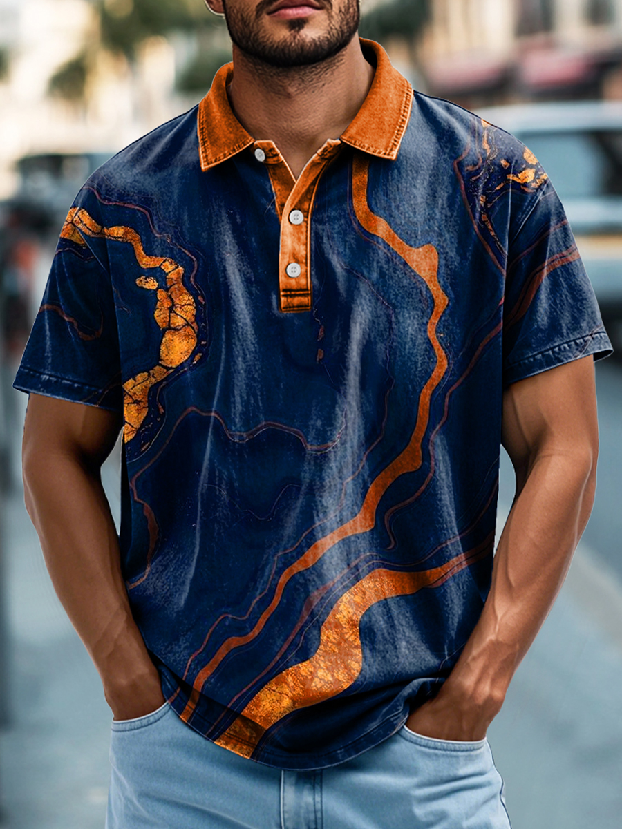 Men's Retro Abstract Line Print Casual Short Sleeve Polo Shirt