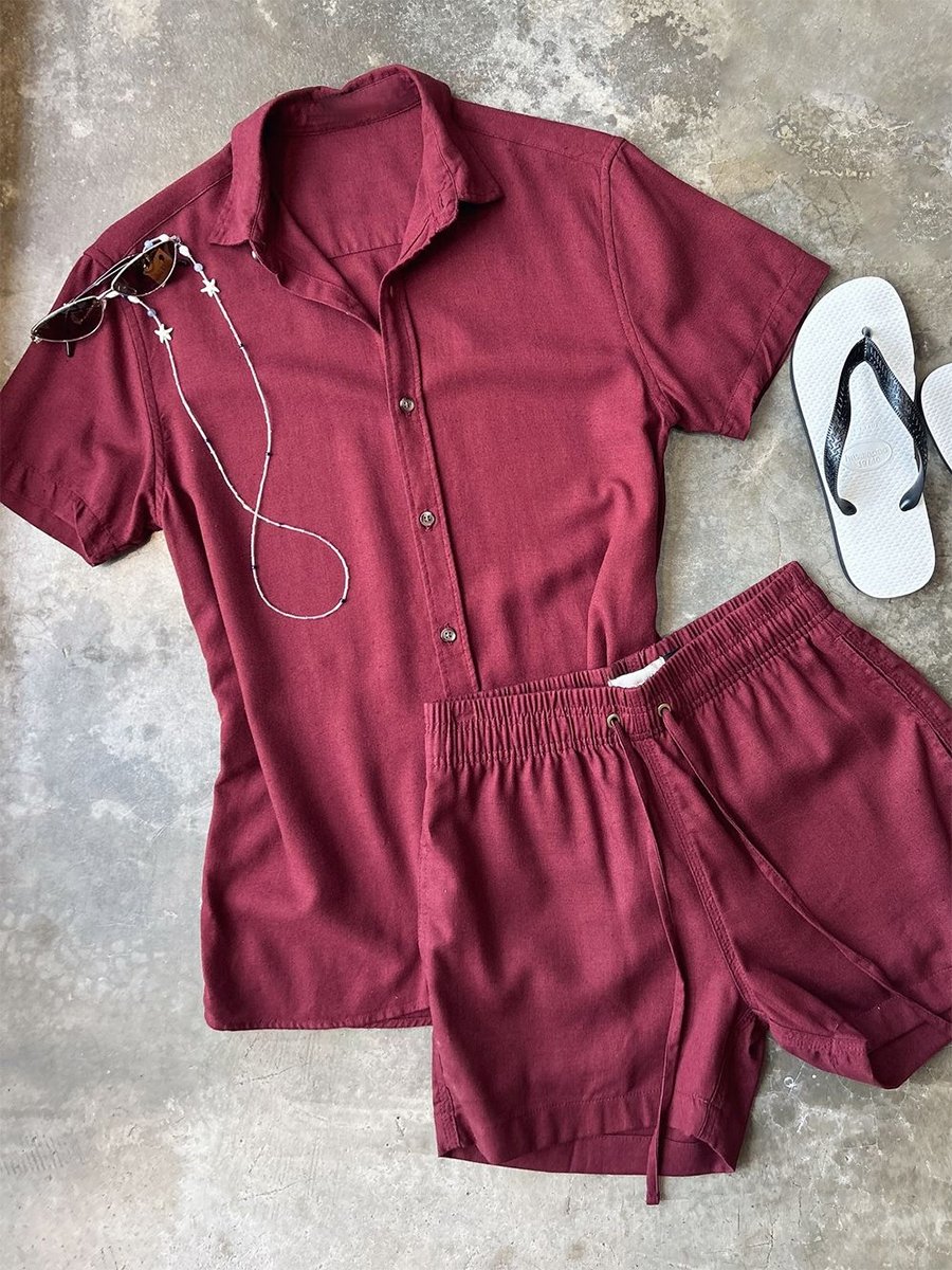 Men's Retro Casual Short Sleeve Faux Linen Lapel Shirt