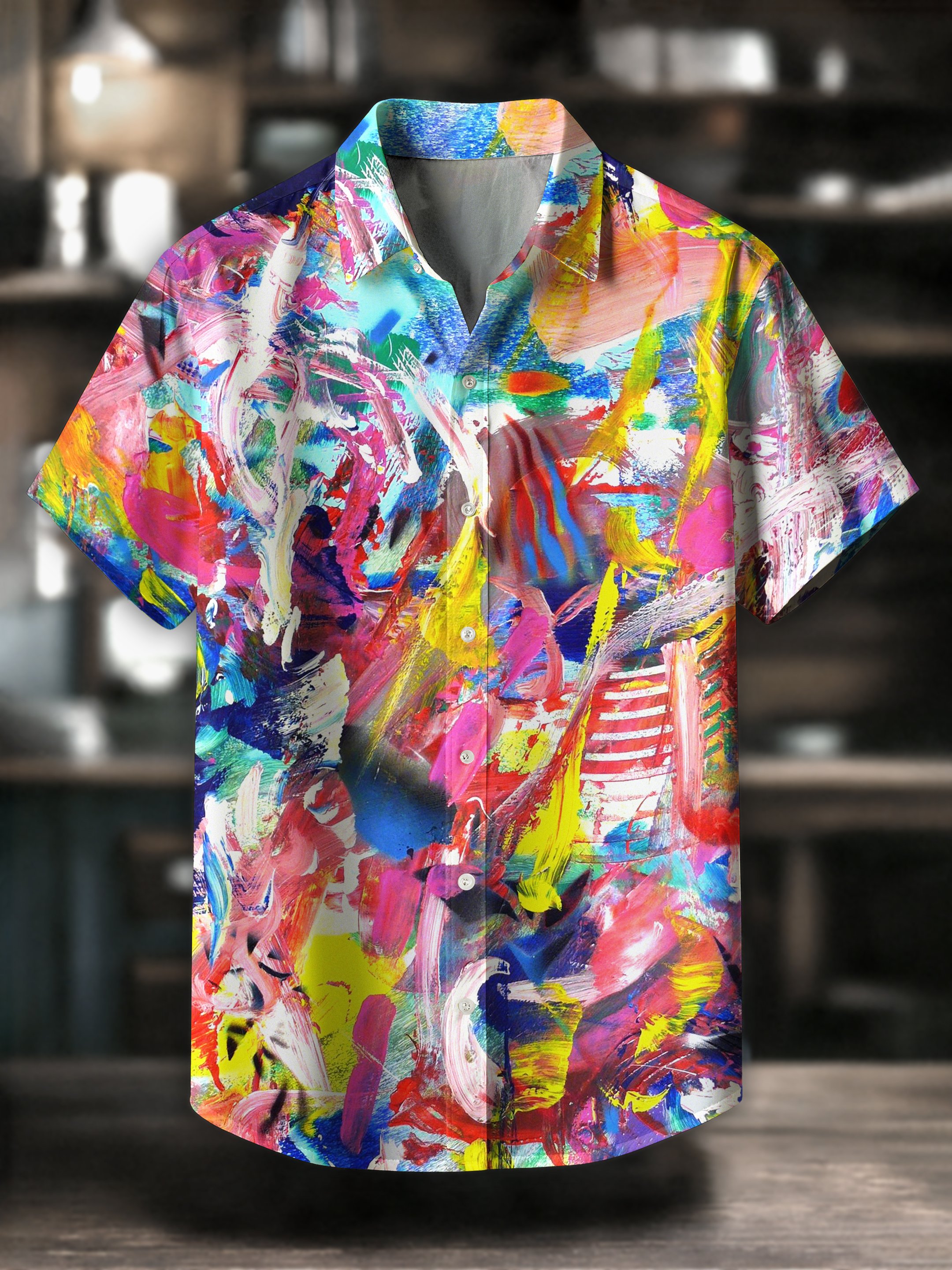 Men's Retro Geometric Abstract Print Lapel Short Sleeve Shirt