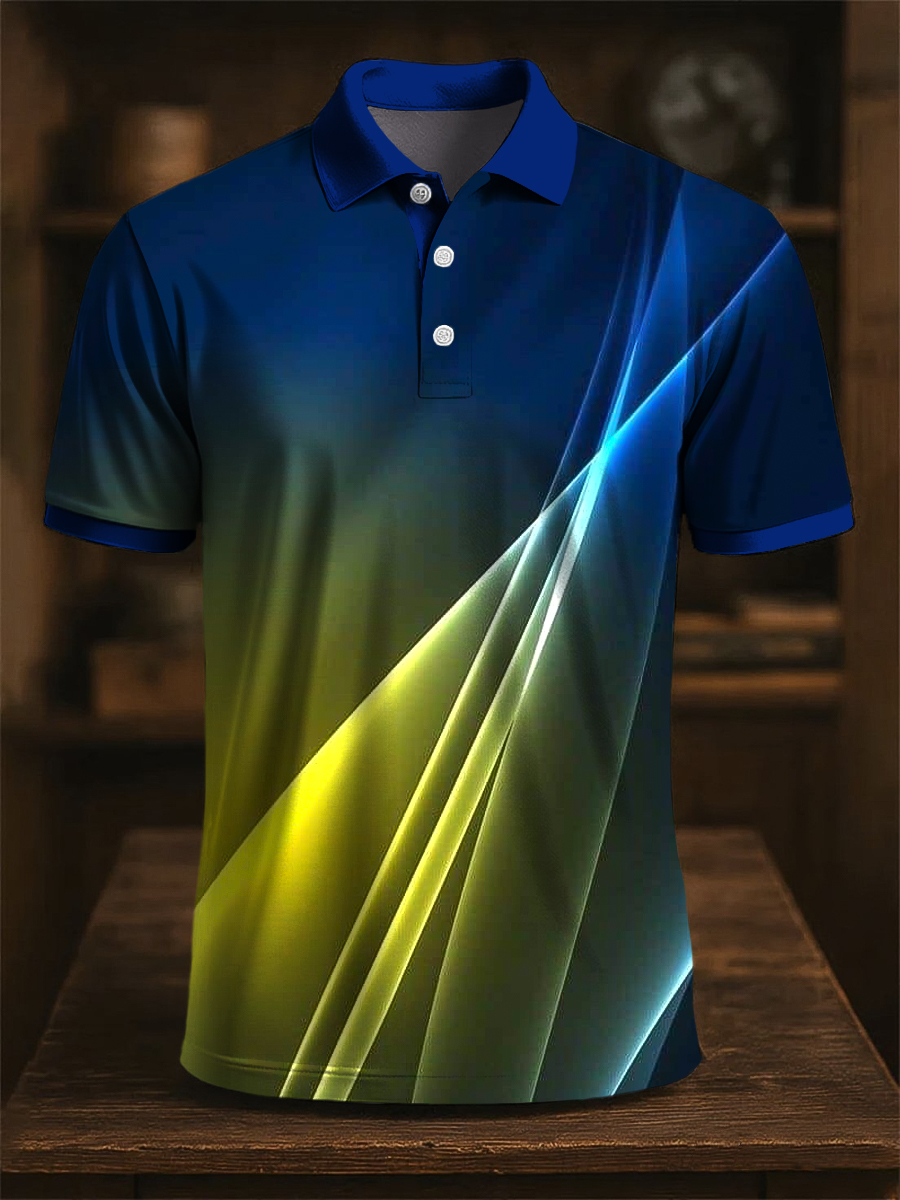 Men's Retro Gradient Colorful Stripes Artistic Print Casual Business Polo Shirt