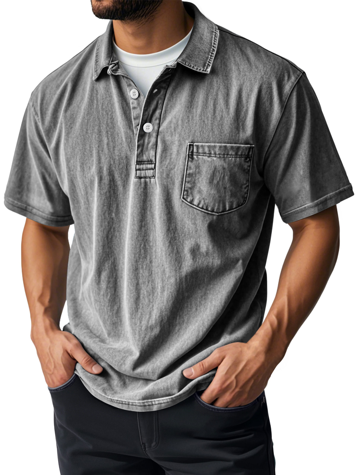 Men's Retro Lapel Button Pocket Casual Short Sleeve POLO Shirts
