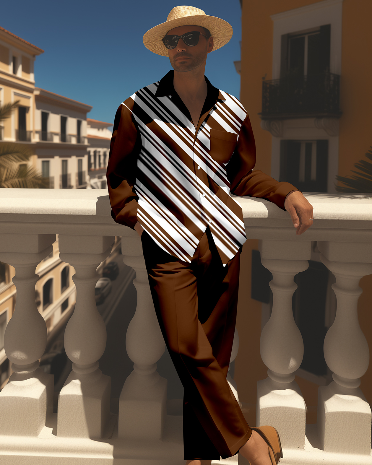 Men's Retro Printed Long Sleeve Shirt Walking Suit 1501