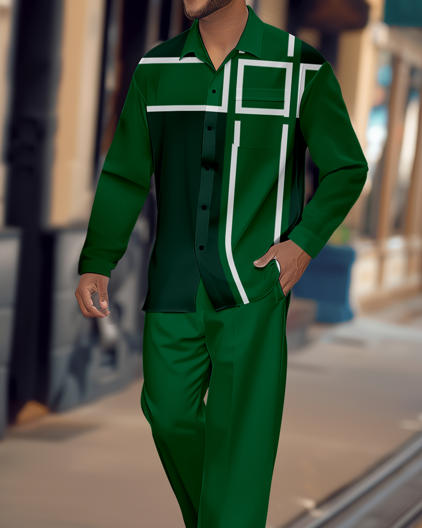 Men's Retro Printed Long Sleeve Shirt Walking Suit 1610