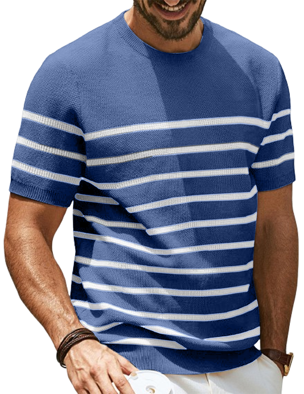 Men's Round Neck Striped Simple Everyday Short-sleeved T-shirt