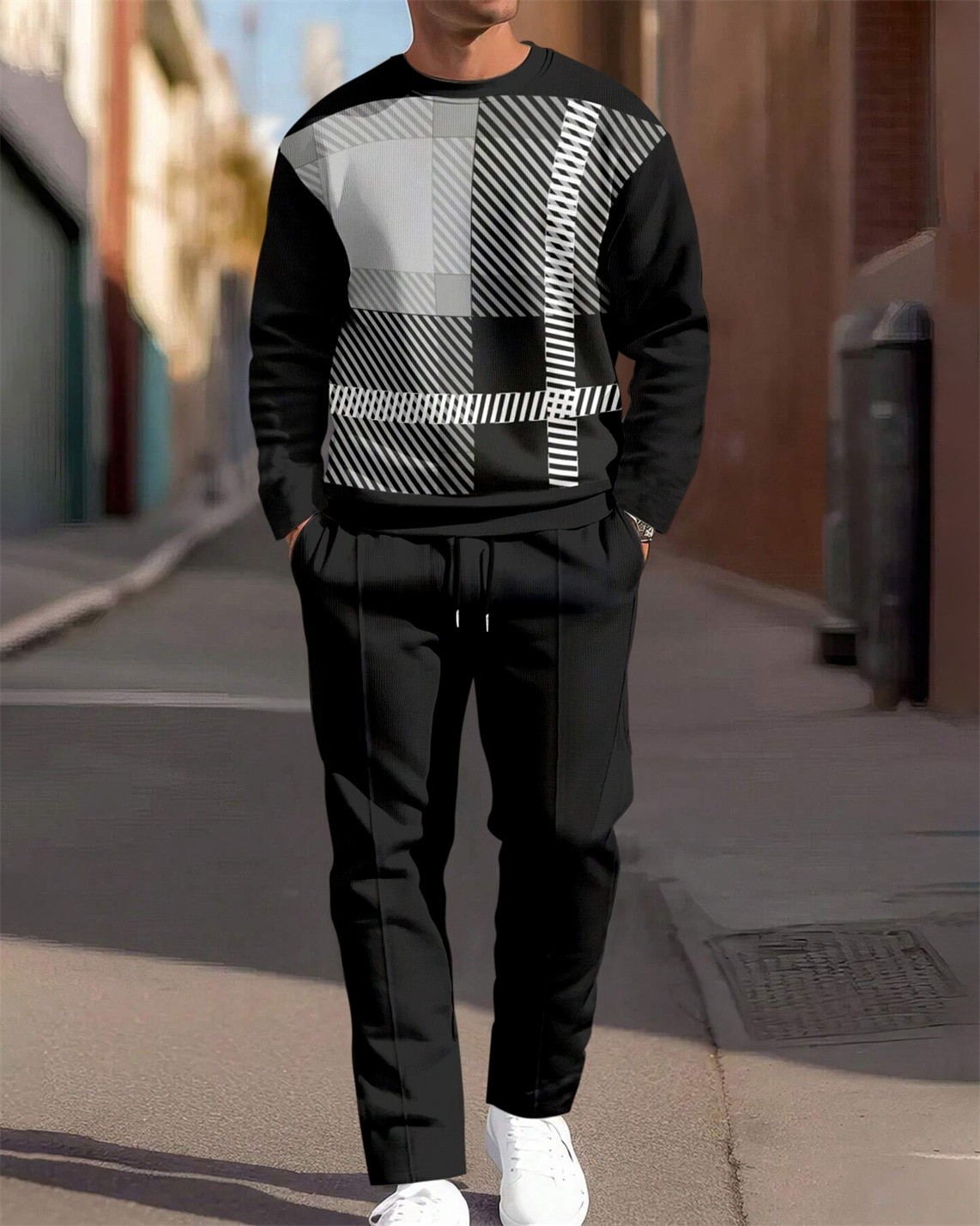 Men's Simple Colorblock Round Neck Casual Sports Set 0189
