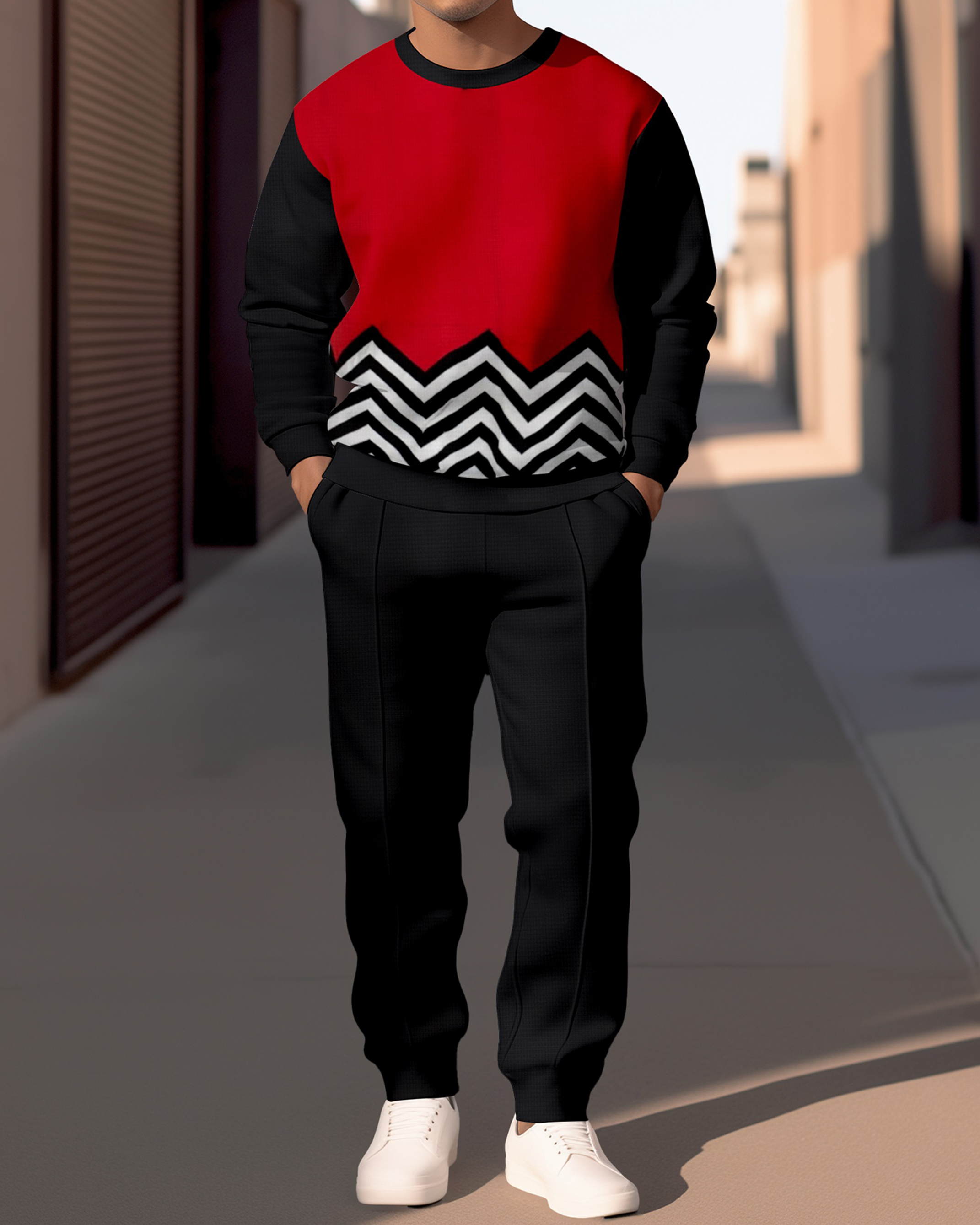 Men's Simple Colorblock Round Neck Casual Sports Set 058