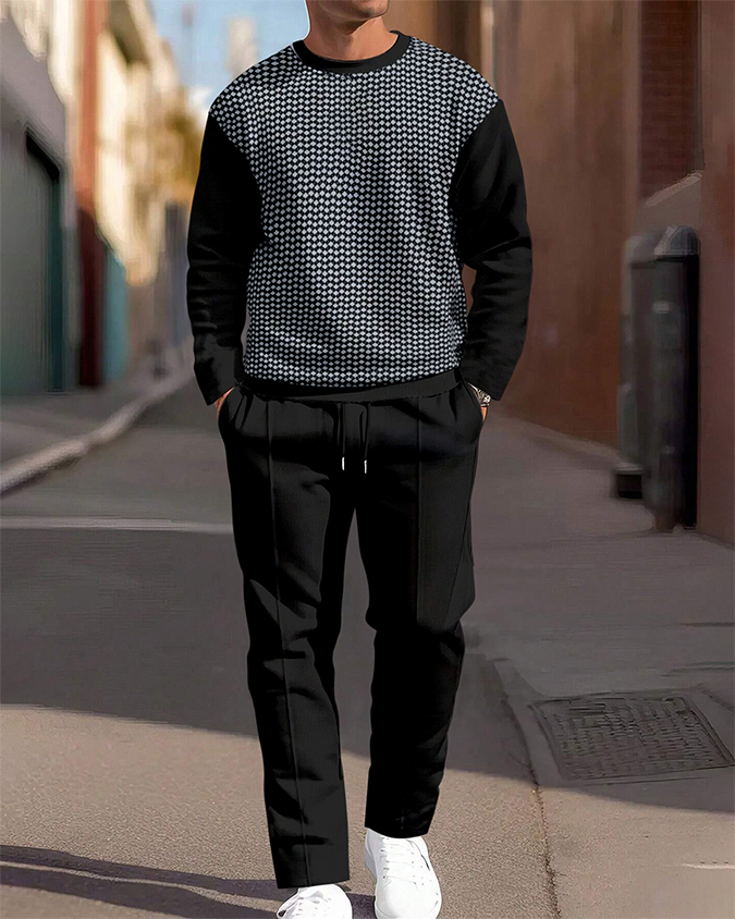 Men's Simple Colorblock Round Neck Casual Sports Set 064