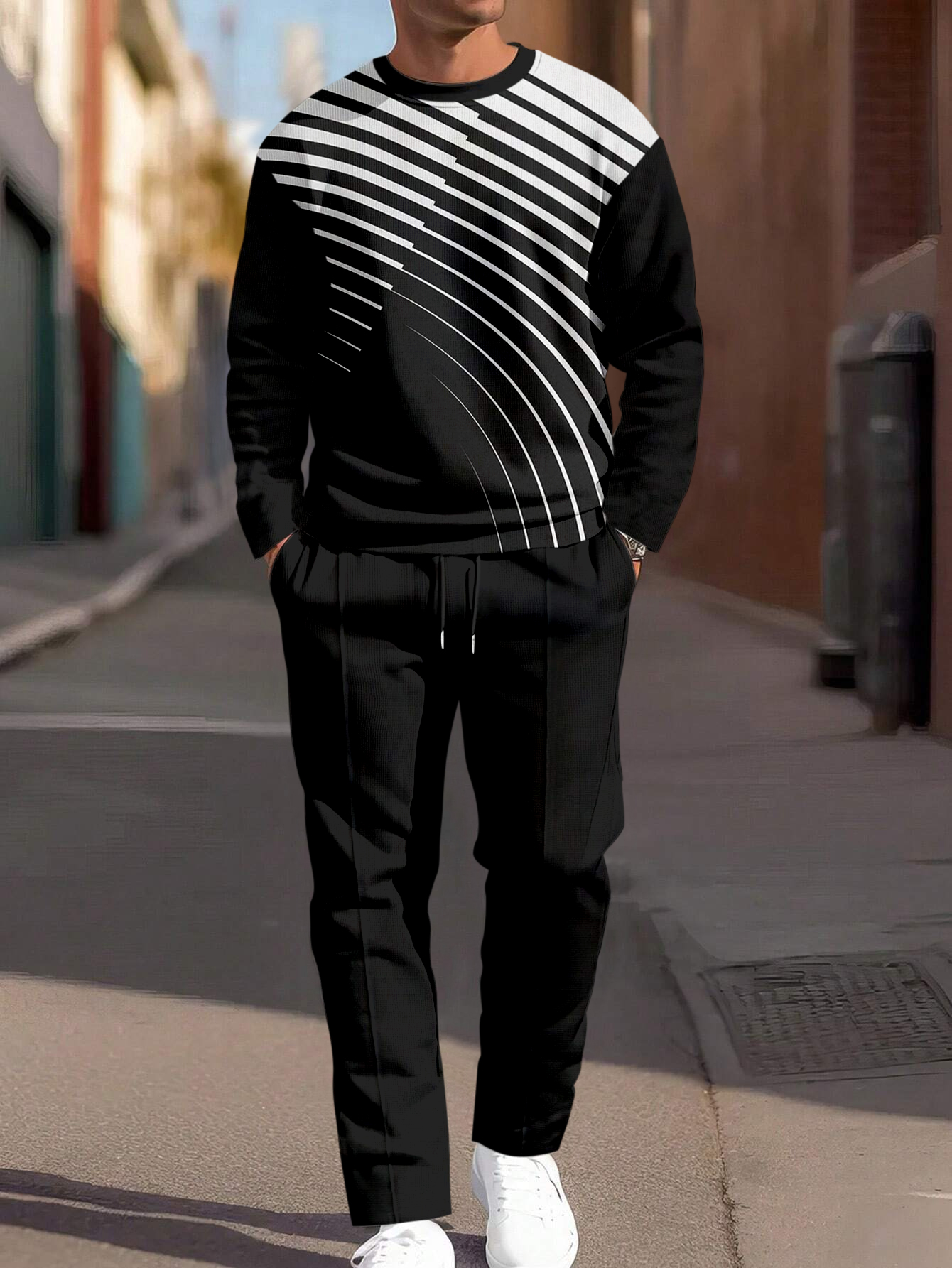 Men's Simple Colorblock Round Neck Casual Sports Set 075