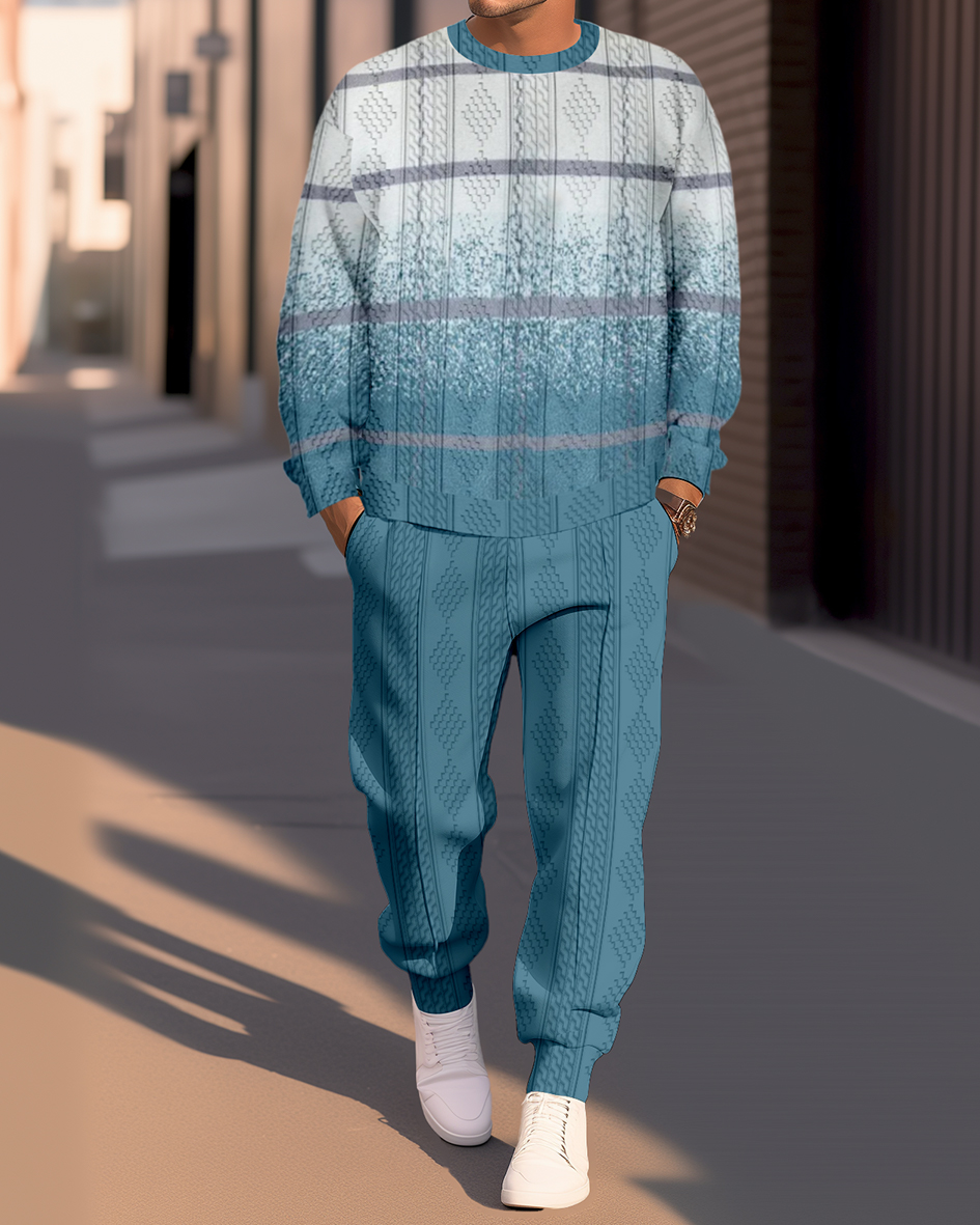 Men's Textured Jacquard Round Neck Casual Sports Set 012