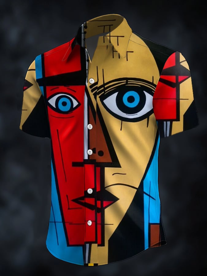 Men's Vintage Abstract Art Design Printed Lapel Shirt