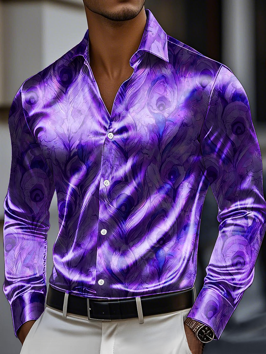 Men's Vintage Abstract Feather Art Print Premium Satin Shirt
