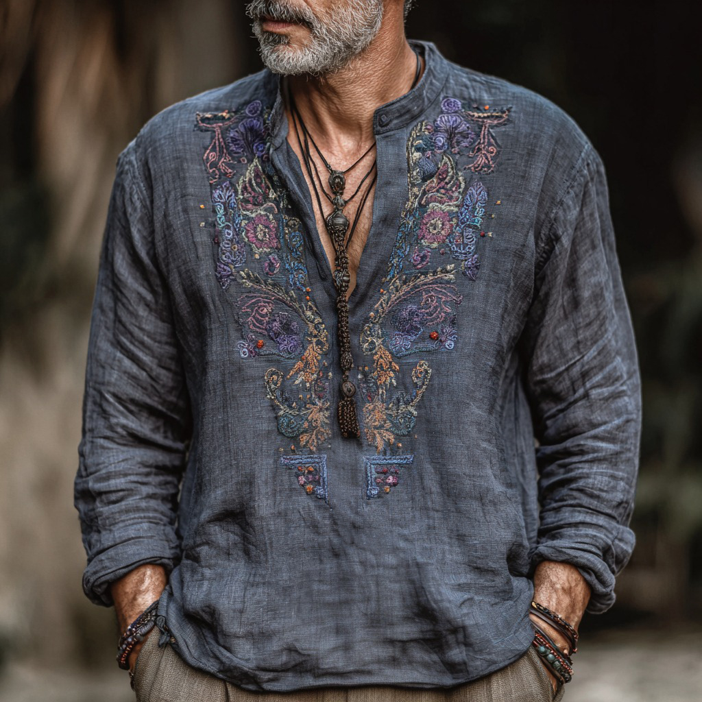 Men's Vintage Ethnic Floral Pattern Linen Shirt