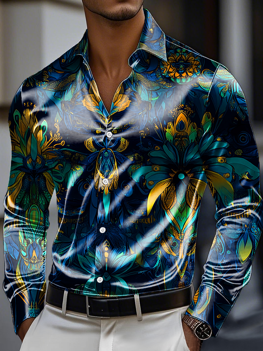 Men's Vintage Gorgeous Floral Art Print Premium Satin Long Sleeve Shirt