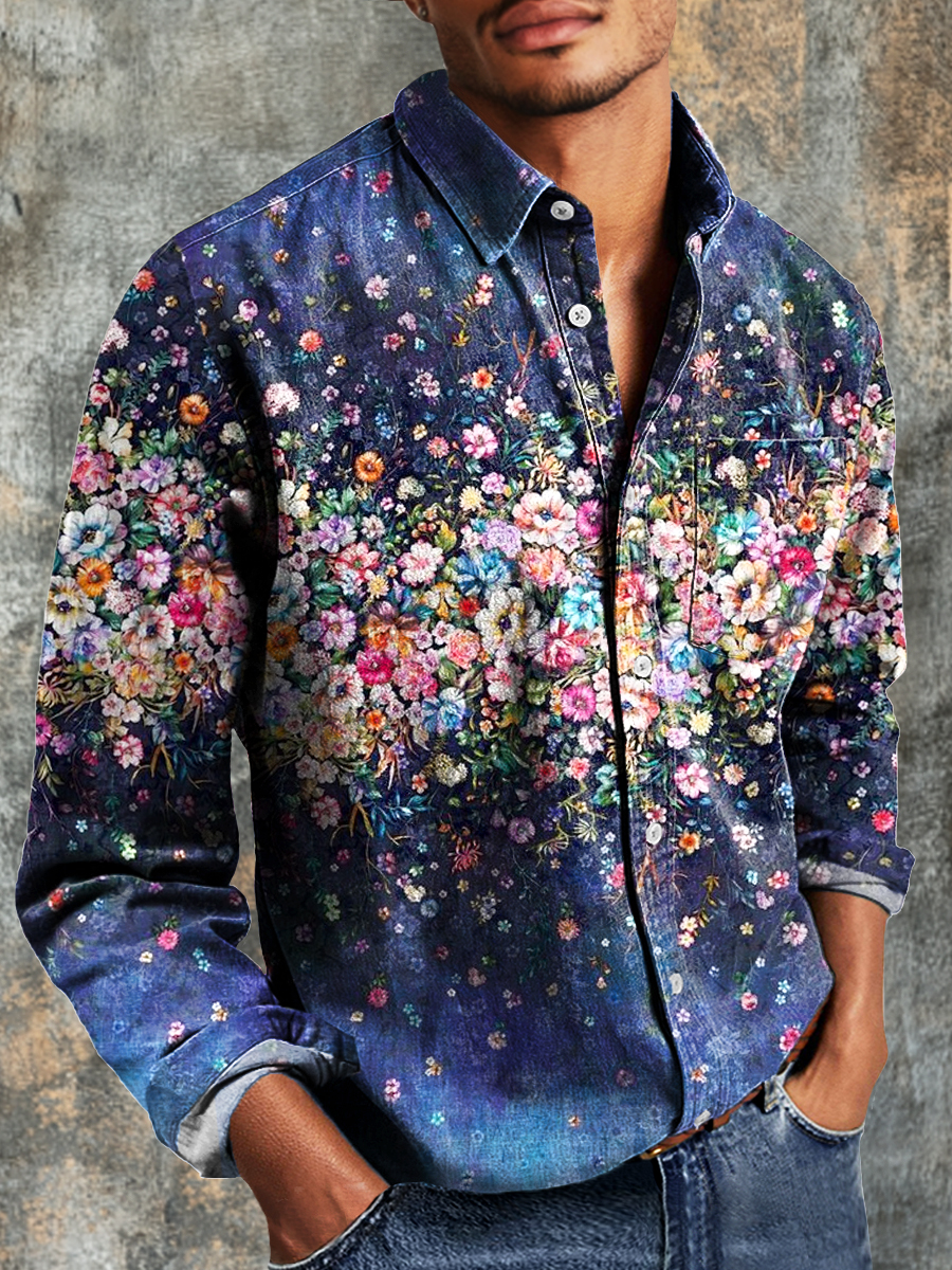 Men's Vintage Gradient Floral Art Print Casual Long Sleeve Shirt