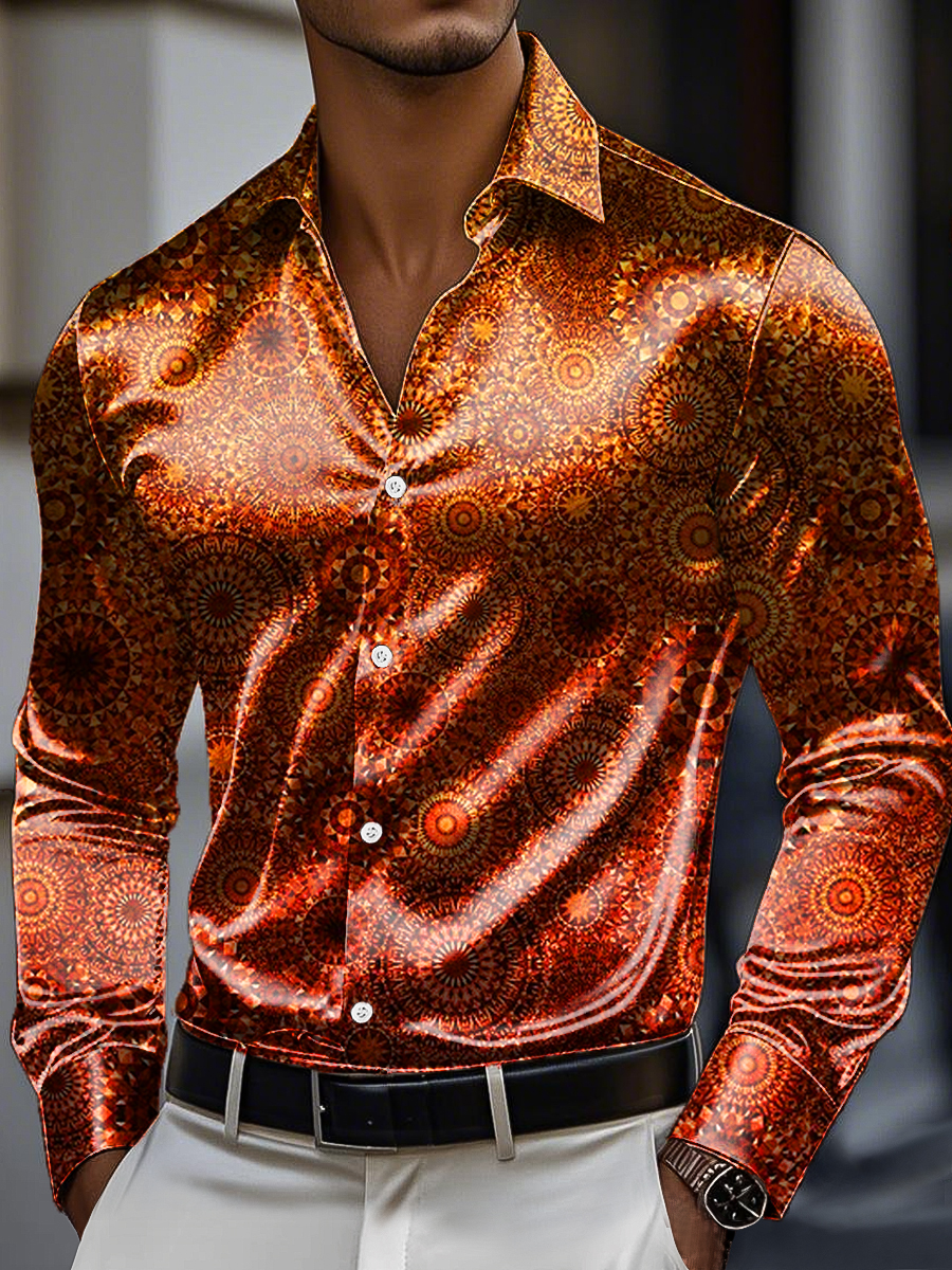 Men's Vintage Irregular Mandala Art Print Premium Satin Long Sleeve Shirt