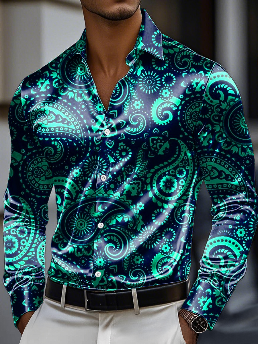 Men's Vintage Paisley Geometric Art Print Premium Satin Long Sleeve Shirt