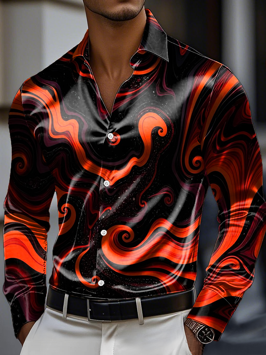 Men's Vintage Punk Textured Art Print Satin Long Sleeve Shirt