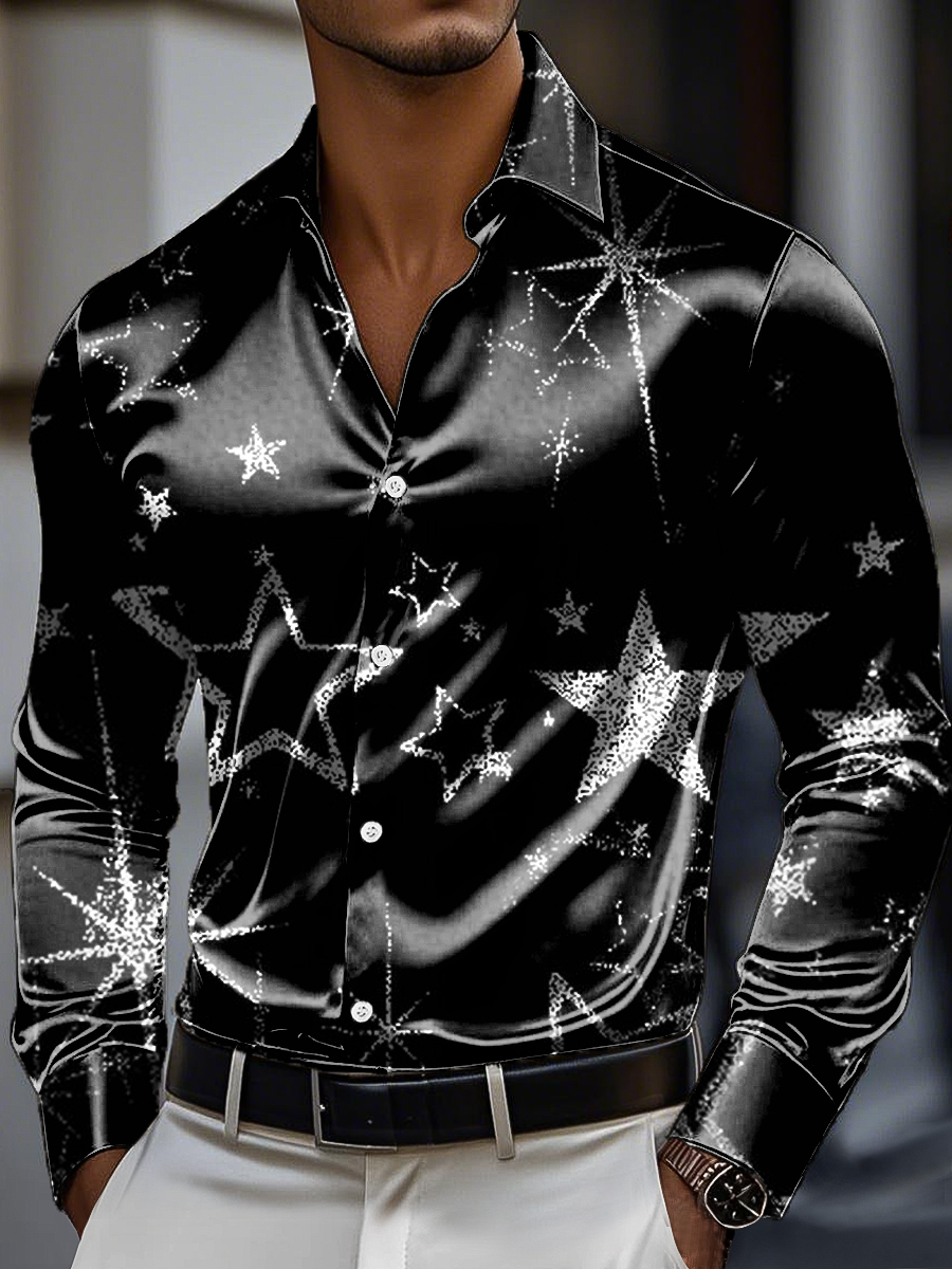 Men's Vintage Sparkling Star Art Print Premium Satin Long Sleeve Shirt