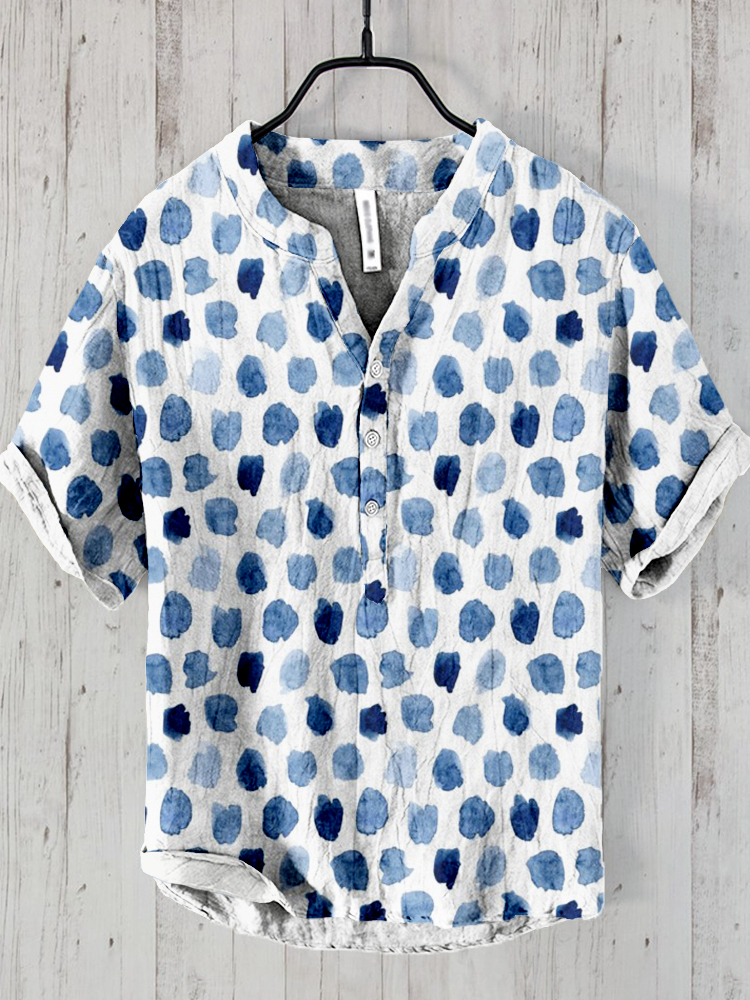 Men's Watercolor Abstract Shapes Linen Blend Cozy Shirt