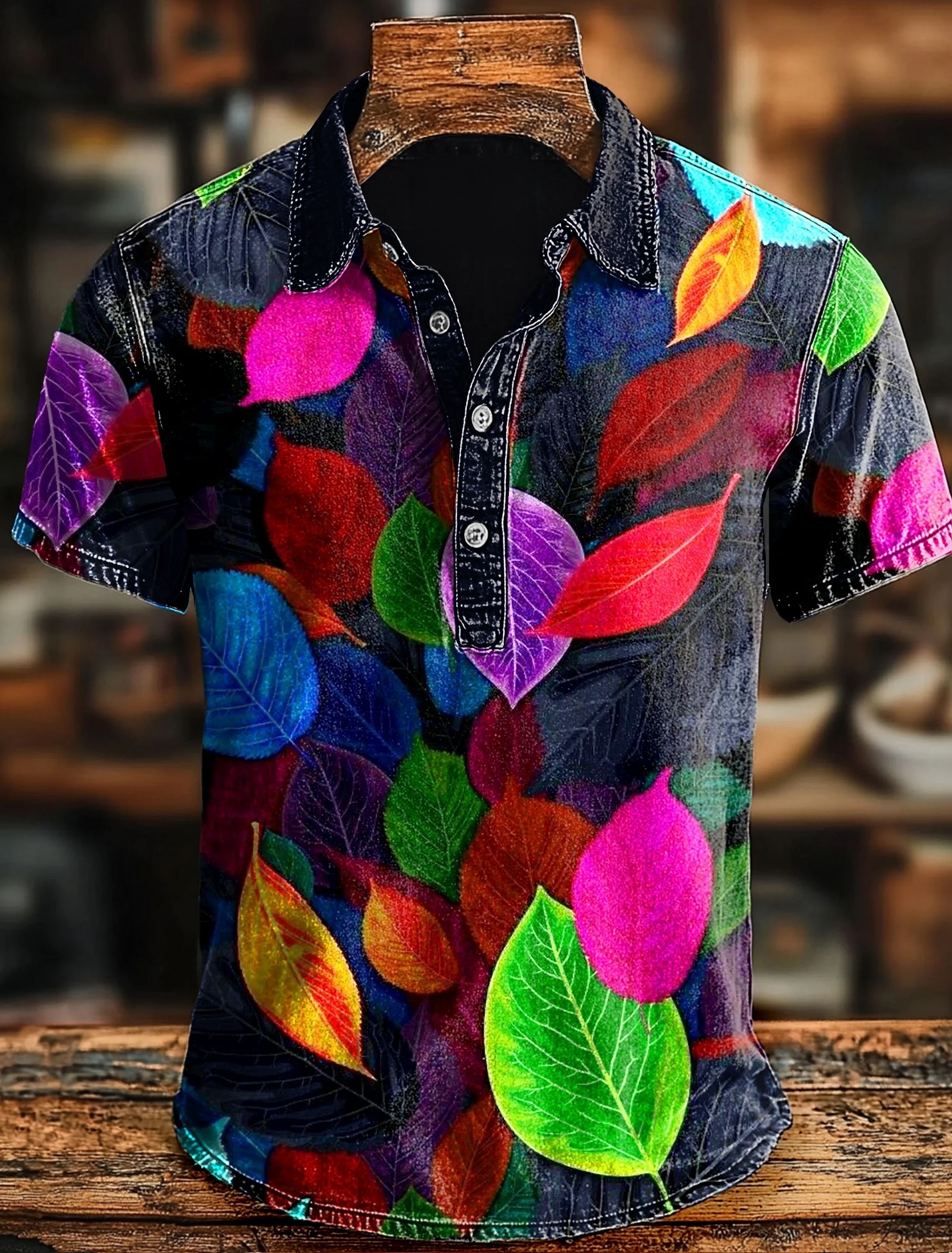 Multicolor Leaves Print Casaul Short SLeeve Polo Shirt