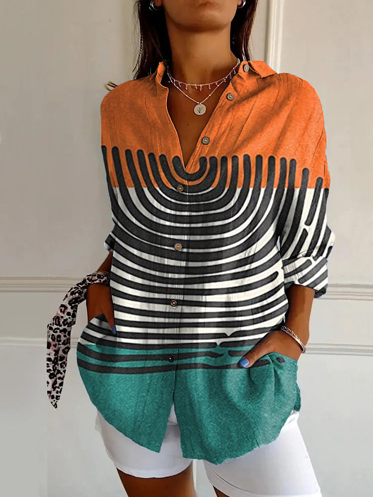 Retro Abstract Art Print Casual Long Sleeve Shirt