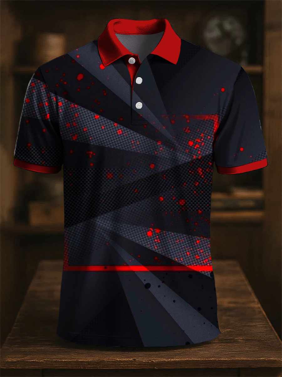 Retro Art Abstract Line Ink Print Casual Business Polo Shirt