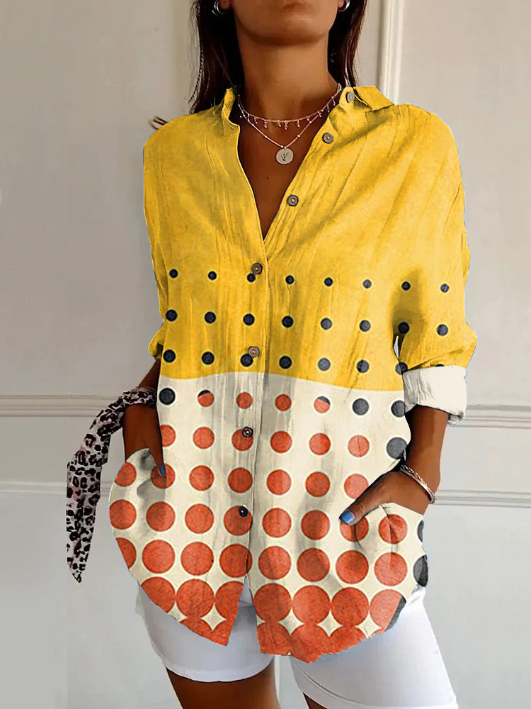 Retro Color Block Polka Dot Abstract Art Long Sleeve Shirt