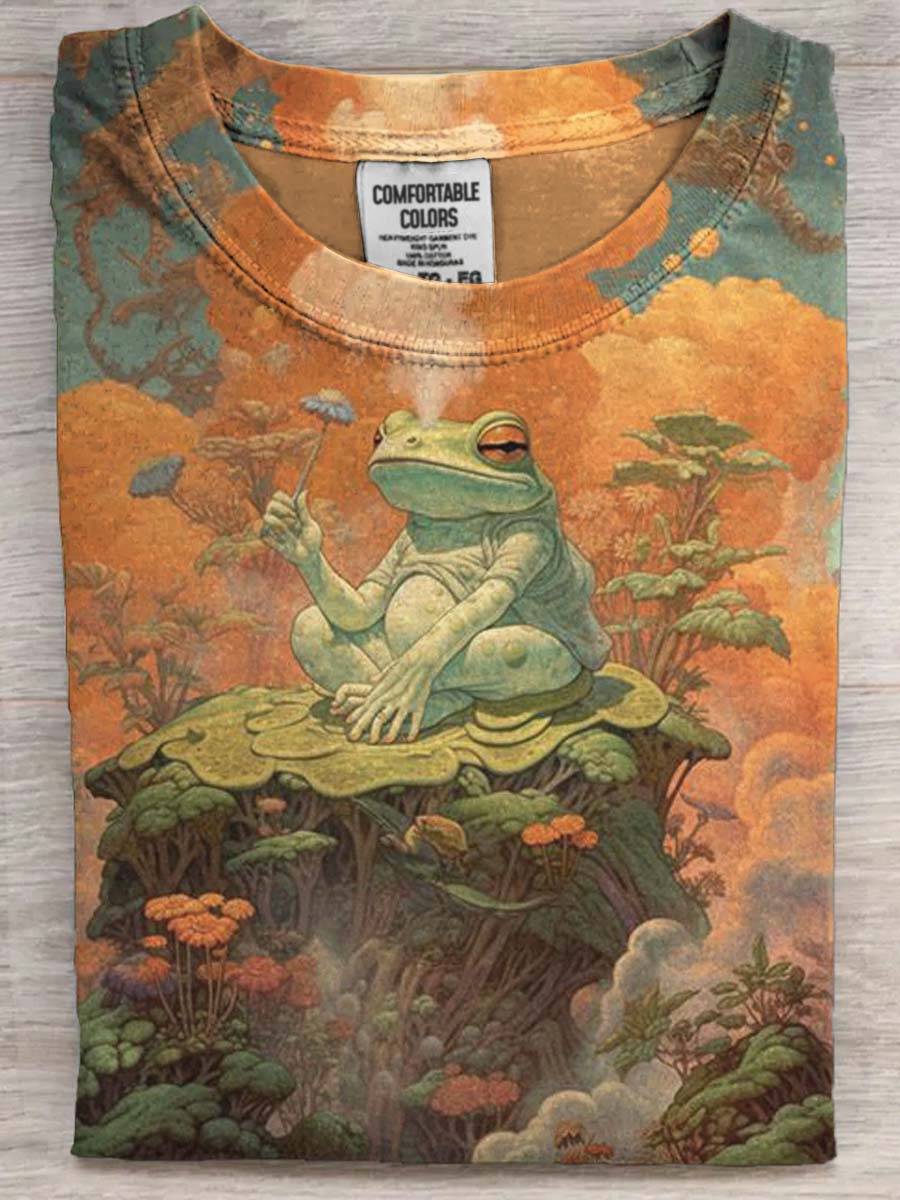 Retro Frog Print Casual Short Sleeve T-Shirt