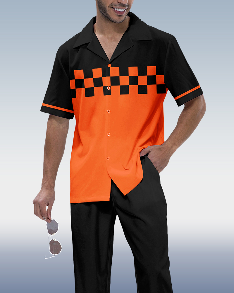 Suitmens Men's Black Plaid Short Sleeve Walking Suit