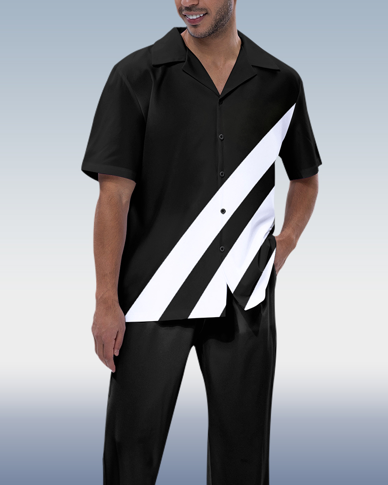 Suitmens Men's Black Walking Suit 2 Piece Short Sleeve Set