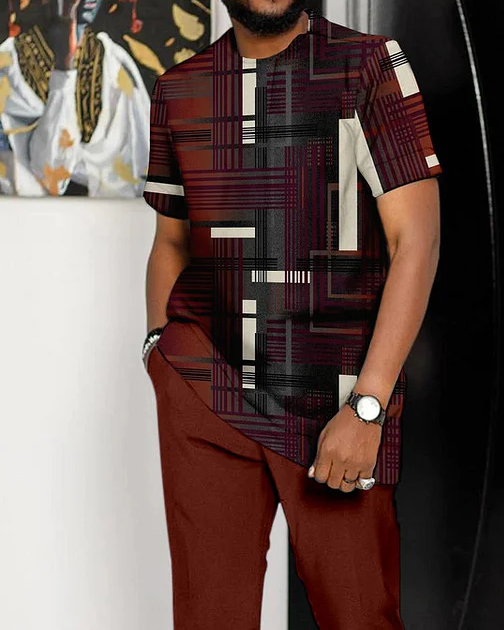 Men's Colorblock Short Sleeve Sports Walking Suit -338