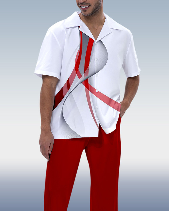 Suitmens Men's Ombre Print Short Sleeve Shirt Walking Set 286