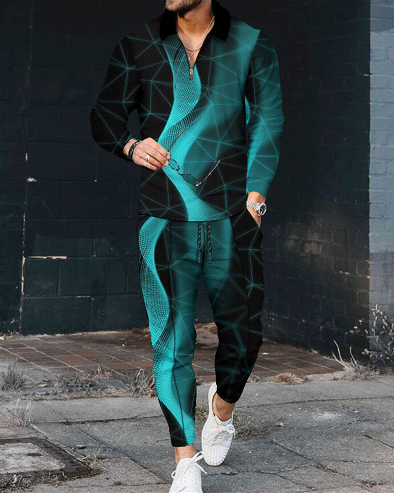 Men's Phantom Long Sleeve Zipped POLO Trousers Set 0276
