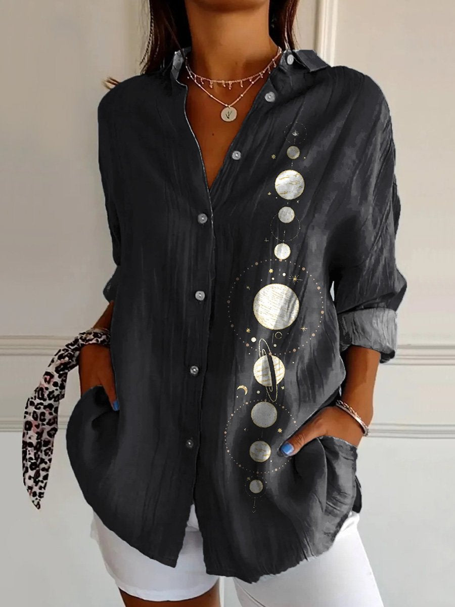 Track Of The Moon Graphic Printed Women's Casual Cotton Shirt