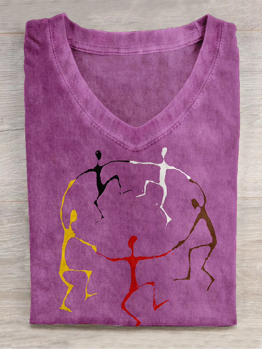Unisex Abstract Fire Dance Ritual Art Print Casual V-Neck T-Shirt