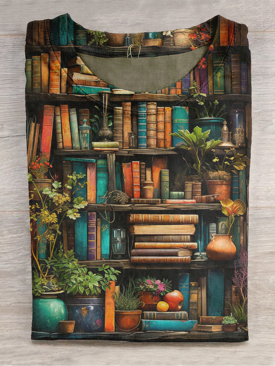 Graphic Tee Unisex Book Art Print Crew Neck Short Sleeve T-Shirt