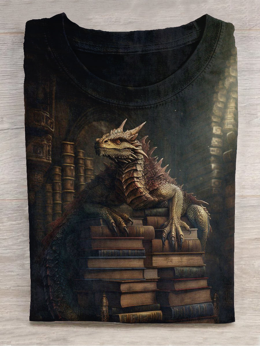 Unisex Dragon's Book Treasures Art Print Crew Neck Short Sleeve T-Shirt