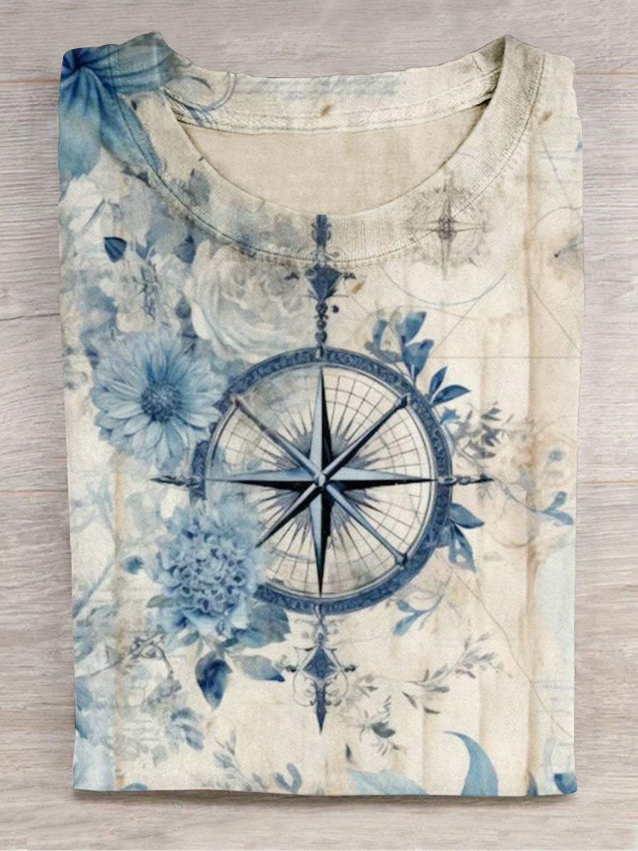 Unisex Floral Compass Abstract Print Design T-Shirt