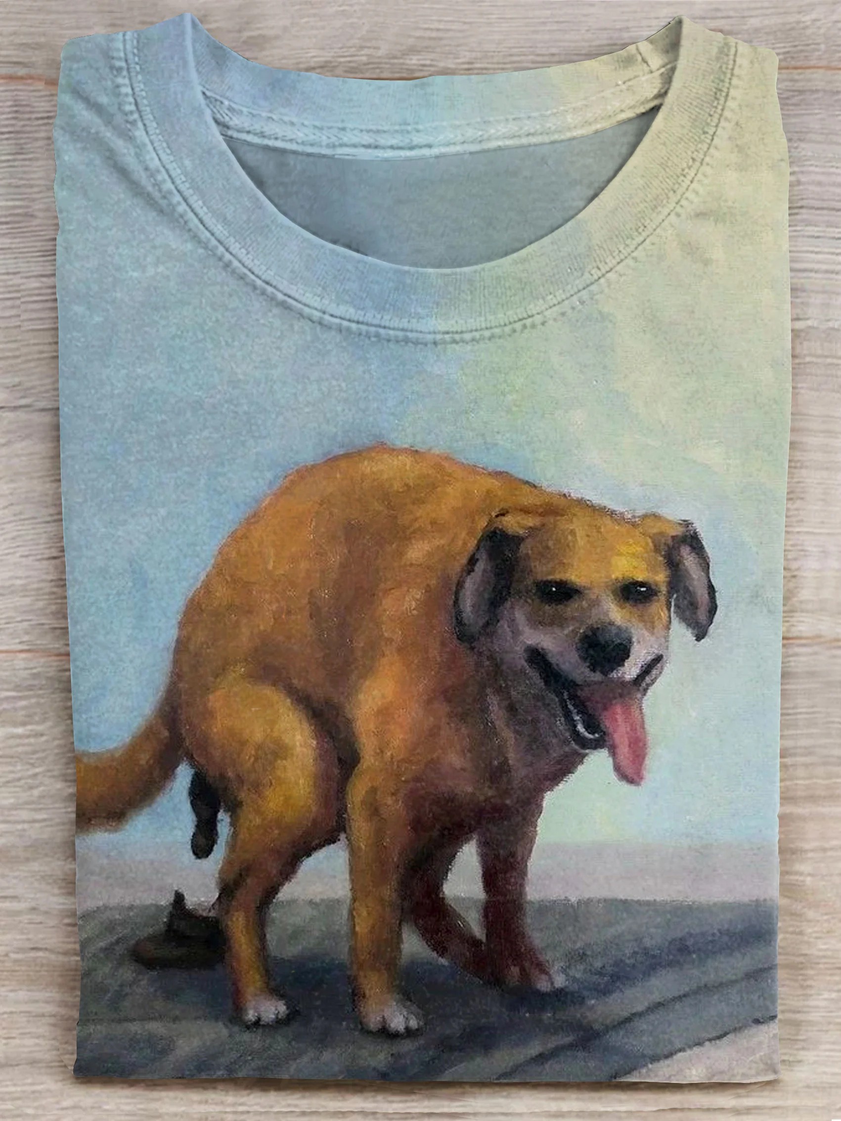 Funny Shitting Dog Art Print Casaul Short Sleeve T-shirt