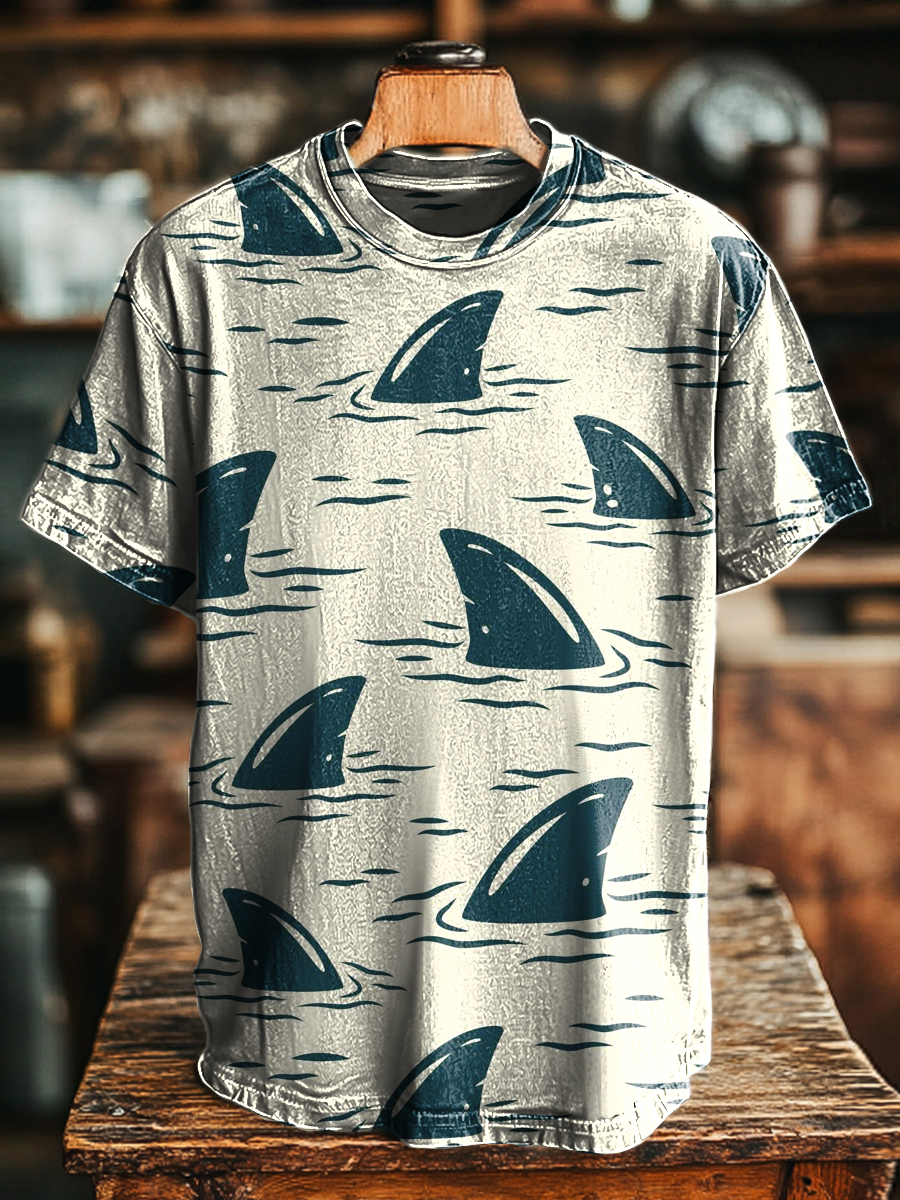 Unisex Fun Shark Corner Print Casual Loose Short Sleeve T-Shirt