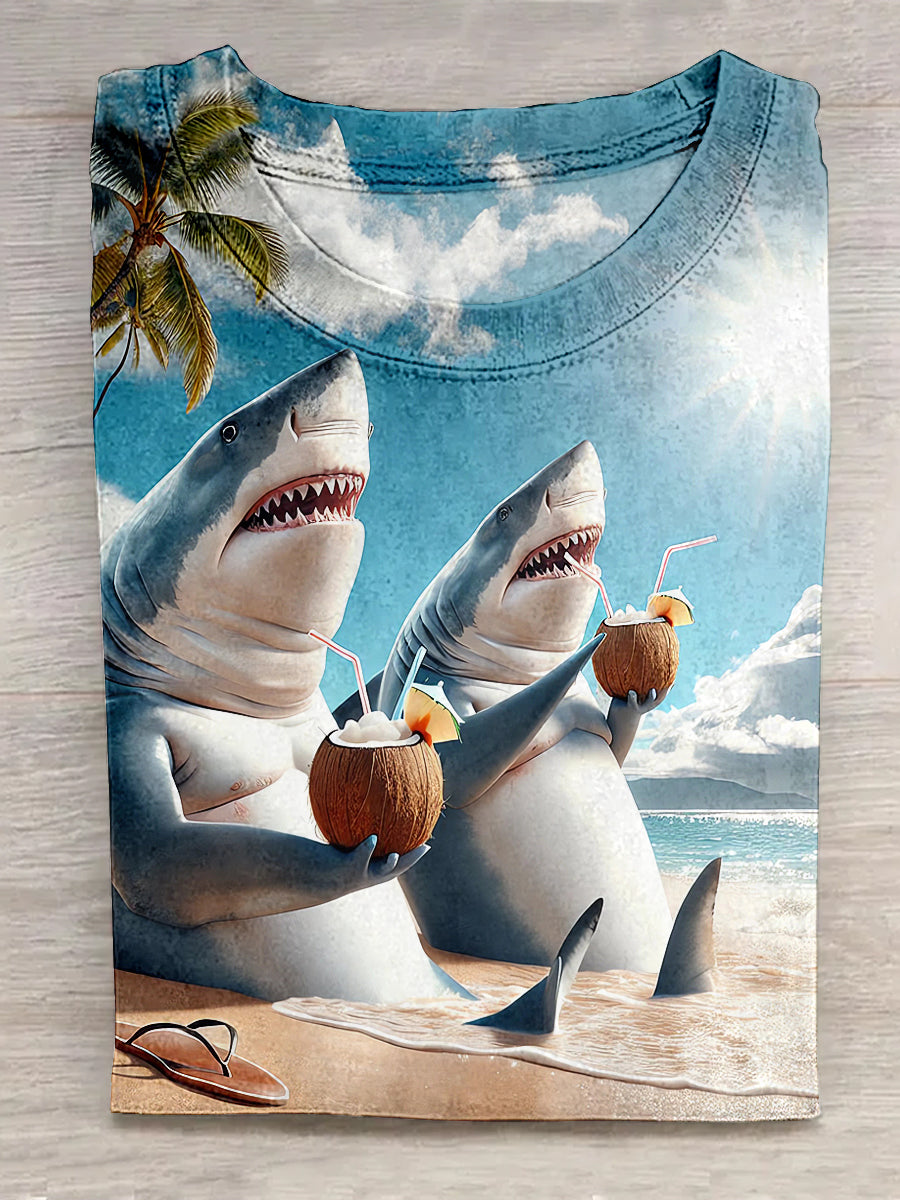 Sharks Drinking Coconut Milk On The Beach T-Shirt