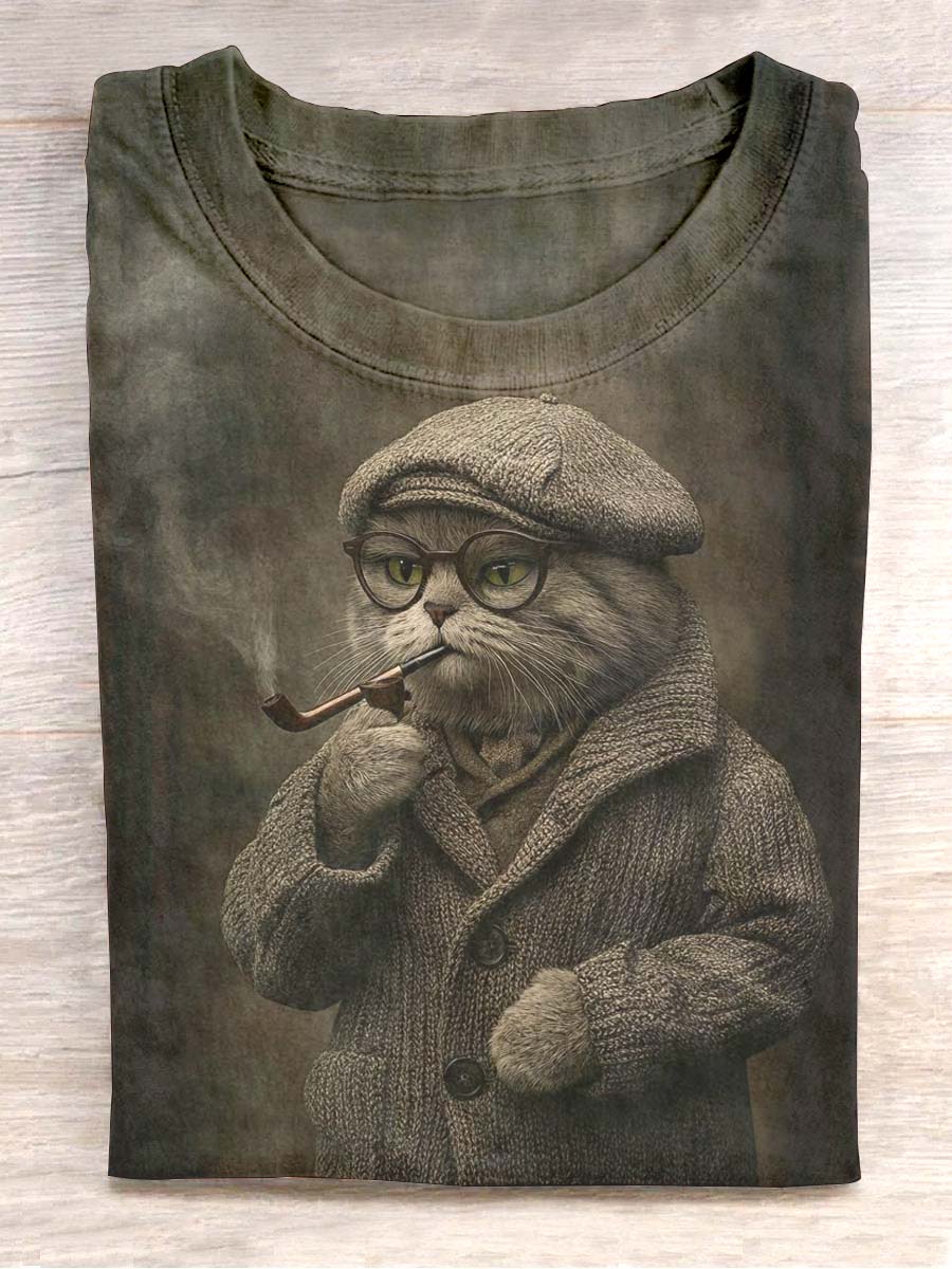 Unisex Handsome Cat Printed Casual Short Sleeve T-Shirt