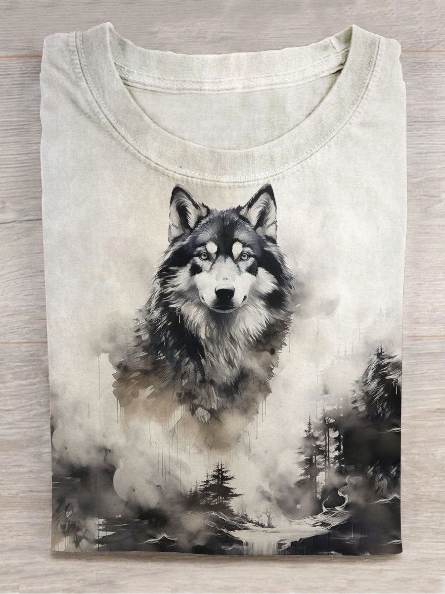 Unisex Ink Painting Wolf Abstract Print Design T-Shirt