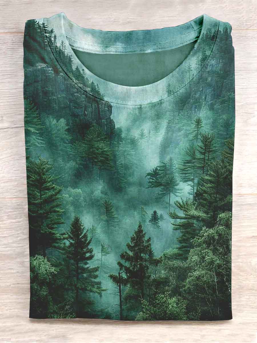 Unisex Misty Forest Print Casual T-shirt